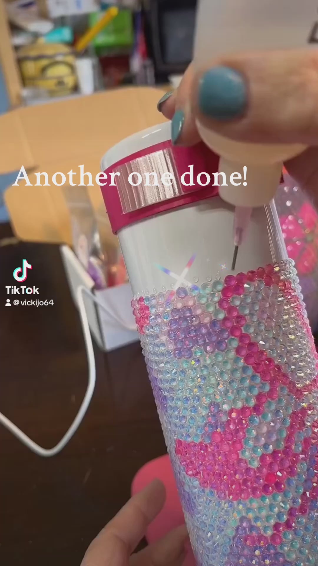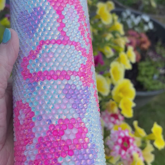 This is a 20oz tumbler that has over 2,000 rhinestones. Comes with a lid and straw.