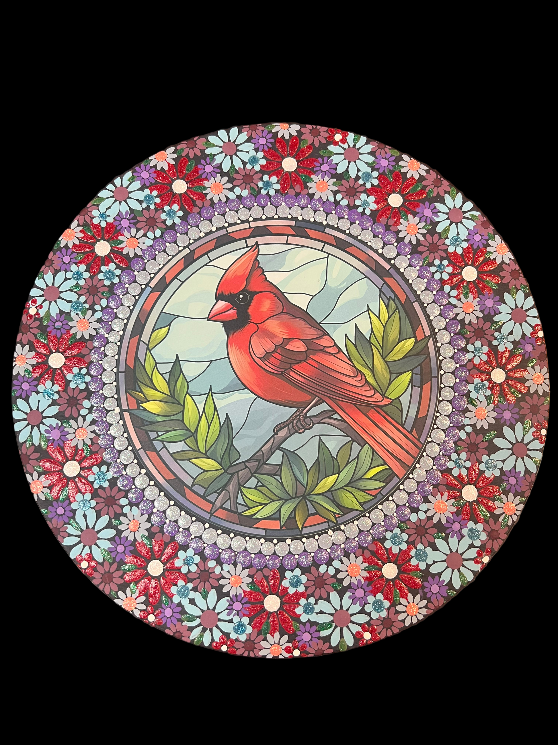 This is a 10 inch wood round with a 6 inch metal sign. I have painted around the metal sign. Has a clear coat over paint and a sawtooth hanger on the back.