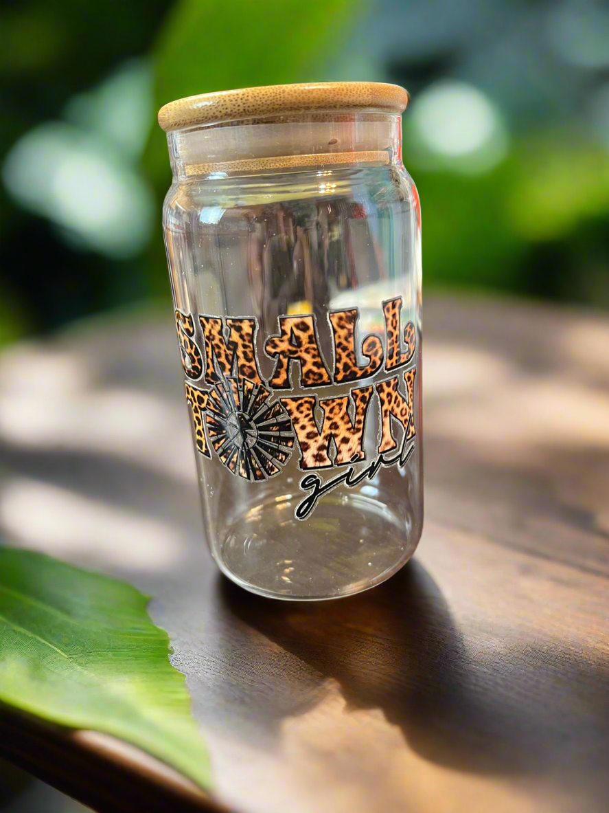 16oz Libby glass. Comes with a bamboo lid, glass straw and straw cleaner.