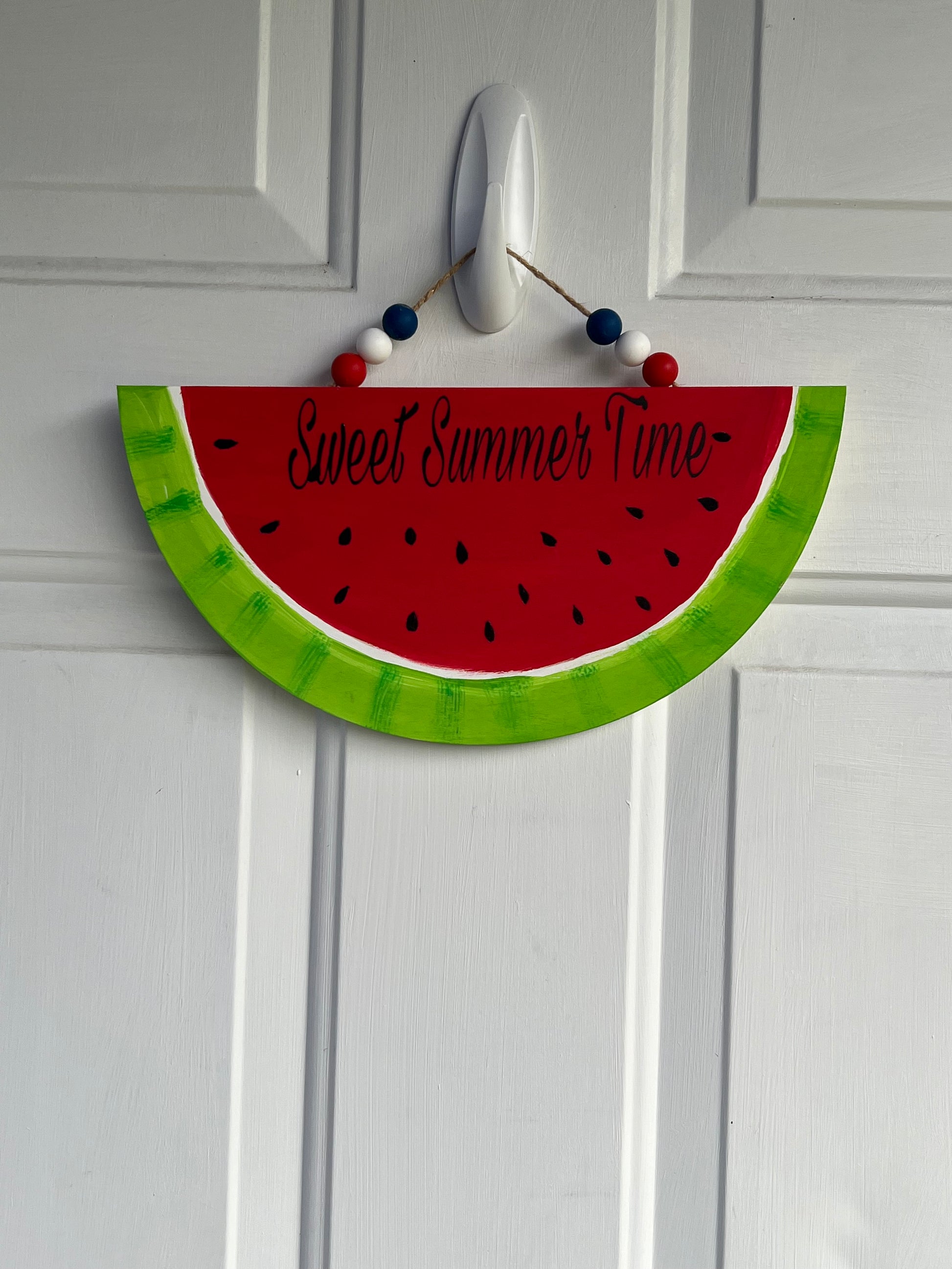 This is a 12x6x.25 wood sign. I hand painted the watermelon and added some vinyl words.